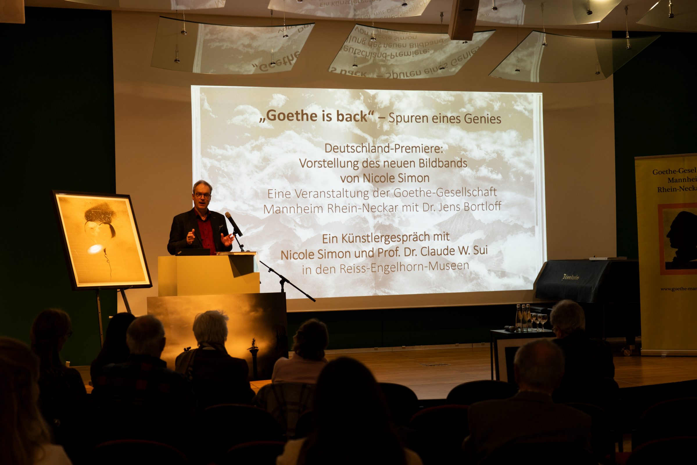 Im Mittelpunkt des Abends standen Goethes Menschlichkeit, seine tiefe Naturverbundenheit und seine schöpferische Kraft. Ausgewählte Bildbeispiele machten seinen Geist, seine innere Landschaft und prägende Orte und -Momente sichtbar.